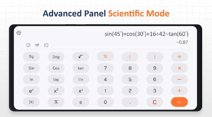 Keď sú vaše potreby zložitejšie, aplikácia Calculator vás nesklame. Vedecká kalkulačka posúva vaše schopnosti na vyššiu úroveň s pokročilými funkciami, ako sú trigonometrické výpočty (sin, cos, tan), logaritmy (log, ln), exponenciály, mocniny, odmocniny a faktoriály, vrátane konštánt π a e. Riešte komplexné výrazy s podporou zátvoriek a prepínajte medzi režimami Stupne a Radiány pre presné výsledky. Navyše, náš Intelektuálny matematický riešiteľ (AI Math Solver) prináša prelom v riešení zložitých rovníc, ponúka podrobné krokové riešenia a schopnosť interpretovať rukou písané aj digitálne zadané výrazy, čím zaisťuje hlbšie pochopenie matematiky.
