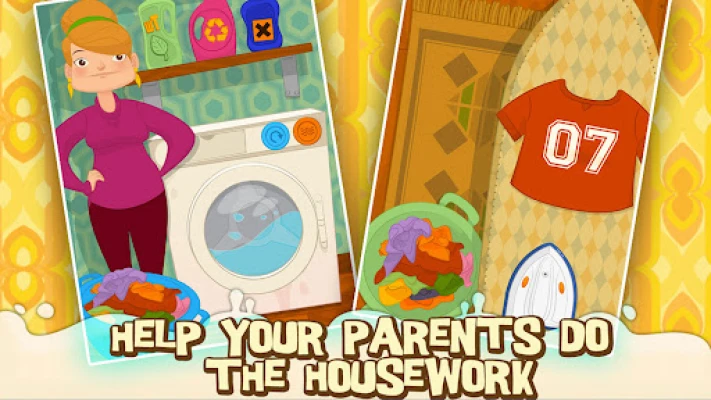 Táto pútavá zbierka minihier vás prevedie všetkými aspektmi starostlivosti o malé bábätko alebo postavičku. Po návrate z ihriska je čas na príjemný kúpeľ s prírodnými produktmi, kde sa naučíte umývať si ruky a správne si čistiť zúbky. Potom nasleduje obliekanie do čerstvého oblečenia z obrovského šatníka, ktorý ponúka nespočetné množstvo možností. Ale čo s tými špinavými vecami? Nebojte sa, hra **Baby Care Games** vás naučí ovládať interaktívnu práčku, sušiť bielizeň vonku (ale dávajte pozor na dážď!) a napokon ju aj vyžehliť. Je to dokonalá simulácia domácich povinností pre malých objaviteľov, plná interakcie a prekvapení.