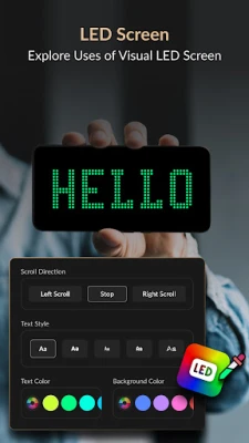 Posuňte kreativitu na novú úroveň s funkciou LED displeja. Napíšte akýkoľvek text a prispôsobte ho štýlom, veľkosťou a farbou. Vyberte si farbu pozadia, smer posúvania textu (vľavo, zastaviť v strede, vpravo) a upravte rýchlosť scrollovania, aby ste vytvorili dynamické správy. Využite režim celej obrazovky na zábavné oznamy, núdzové situácie alebo špeciálne príležitosti. Aplikácia myslí aj na vaše pohodlie s pokročilými nastaveniami: potrasením telefónu môžete zastaviť blikanie blesku, automaticky ho vypnúť pri nízkej úrovni batérie alebo počas používania telefónu. Dokonca si môžete naplánovať čas, kedy má byť blesk úplne deaktivovaný, napríklad počas spánku, čím si zabezpečíte nerušený odpočinok.