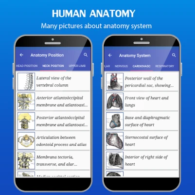 Prehliadanie anatomických štruktúr je intuitívne a efektívne vďaka jednoduchému a užívateľsky prívetivému rozhraniu. S ľahkosťou sa pohybujte medzi zobrazeniami pomocou tlačidiel 'ďalej' a 'späť' a priblížte si detaily podľa potreby. Rýchle vyhľadávanie vám umožní okamžite nájsť konkrétne snímky a štruktúry. Human Anatomy Atlas pokrýva všetky kľúčové anatomické systémy vrátane kostrového, svalového, nervového, kardiovaskulárneho, dýchacieho, tráviaceho, endokrinného, močového, reprodukčného, lymfatického, integumentárneho a zmyslového systému. Okrem toho sa detailne zameriava na rôzne anatomické pozície, od hlavy a krku až po končatiny a trup.