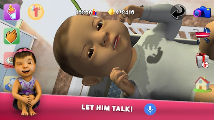 Verná realite, hra i Live funguje v reálnom čase, dokonale zrkadliac hodiny vášho zariadenia. Zažite radosti denného hrania, pokojné popoludňajšie zdriemnutia a tiché noci. Vaše dieťa si vyžaduje neustálu opateru – kŕmte ho mliekom, uspávajte ho jemnými dotykmi a zahŕňajte ho prejavmi náklonnosti. Využite interaktívne hračky a predmety, aby ste ho udržali šťastné a zaujaté. Prostredníctvom intuitívnych ovládacích prvkov môžete dokonca ovládať aj jeho okolie – zapnite svetlá, zariaďte detskú izbu a vytvorte mu útulnú a bezpečnú atmosféru.