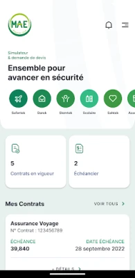 S MAE Tunisie sa platba poistných splátok stáva hračkou. Nastavte si automatické úhrady, prezerajte si detailnú históriu transakcií a dostávajte upozornenia pred nadchádzajúcimi termínmi. Nielenže môžete spravovať existujúce zmluvy MAE ASSURANCES s ľahkosťou, ale aj uzatvárať nové poistné produkty online – s možnosťou porovnania, prispôsobenia a sledovania stavu vašej žiadosti v reálnom čase. Celý proces je zabezpečený a transparentný. V prípade nepredvídaných udalostí môžete rýchlo nahlásiť poistnú udalosť a sledovať jej riešenie krok za krokom, pričom vás aplikácia informuje o každej zmene.